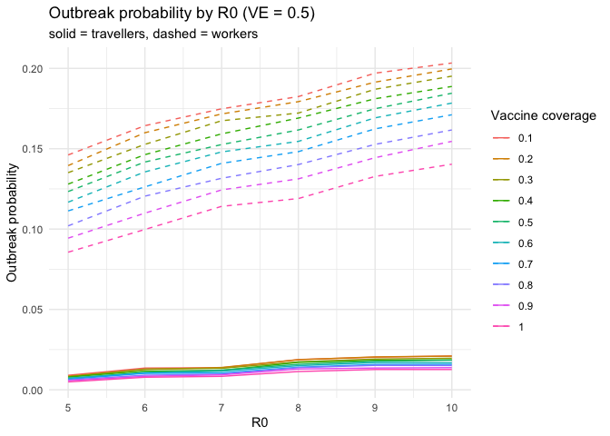 title = "Outbreak probability by R0 (VE = 0.5)",