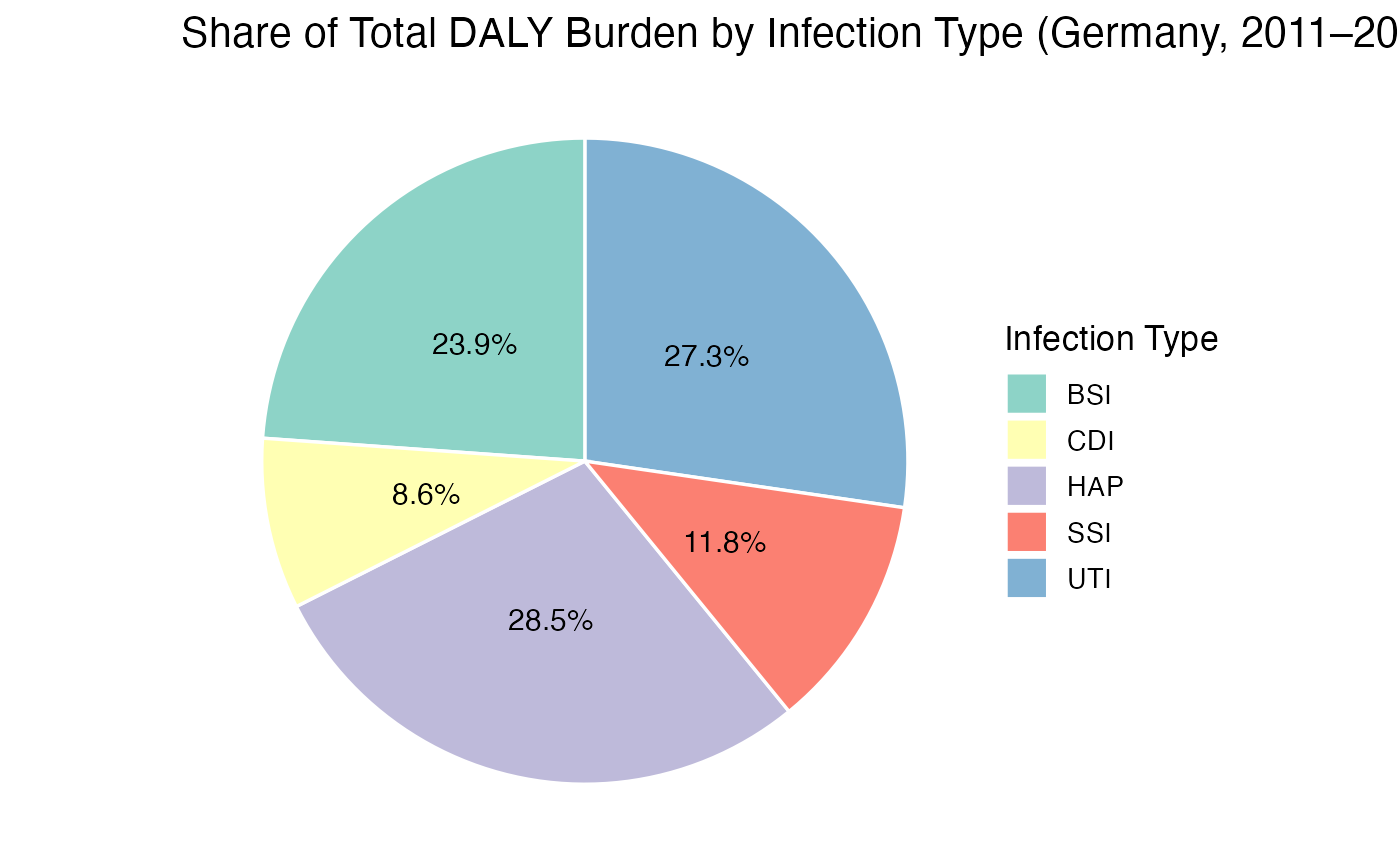 title = "Share of Total DALY Burden by Infection Type (Germany, 2011–2012)",